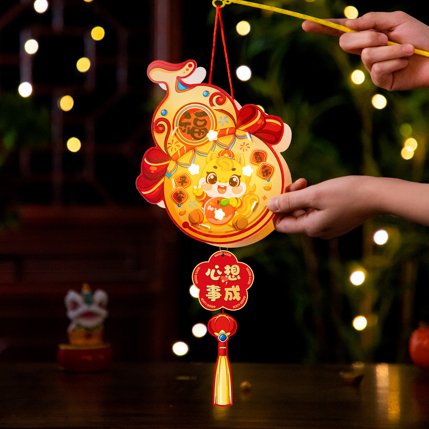 新年发光灯笼diy手工2026新款马年春节过年儿童手提小花灯元宵节