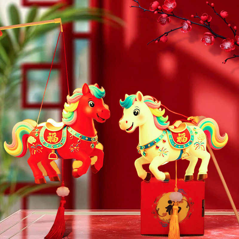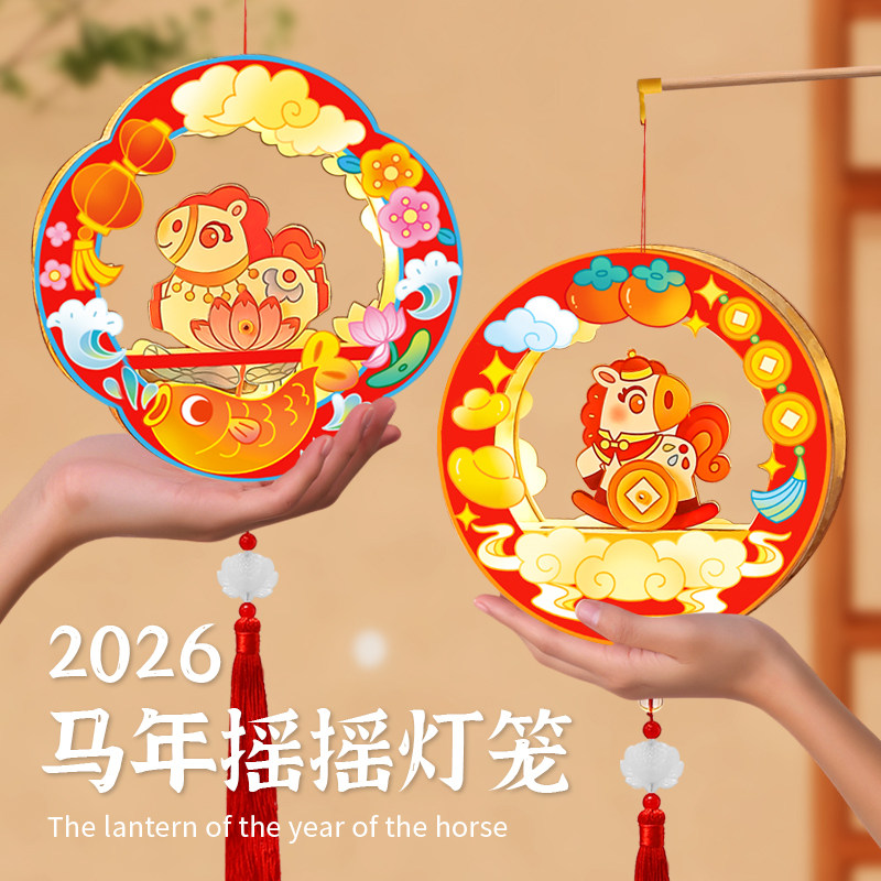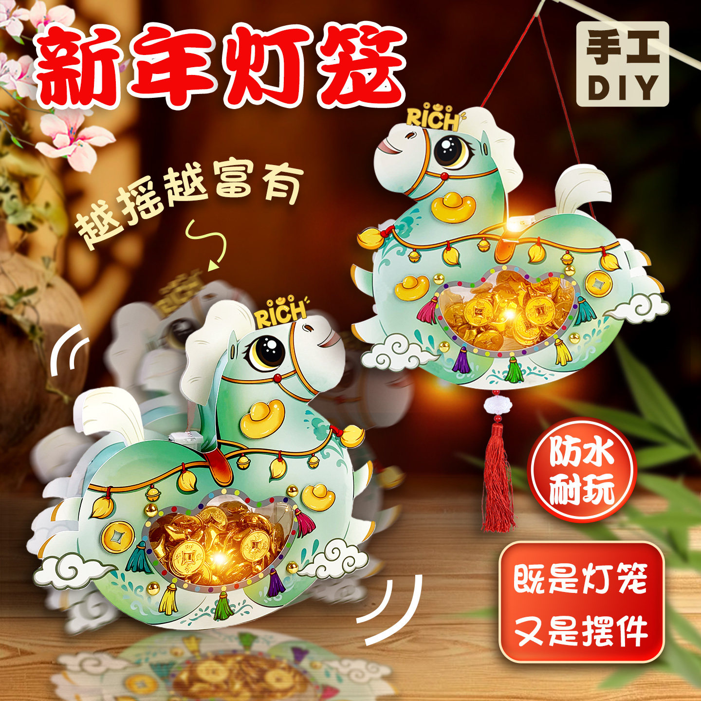 2026年 马年手工灯笼diy材料新年儿童手提发光花灯元宵新款小马灯