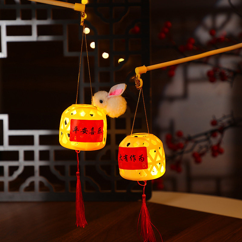 新年竹编兔子灯笼发光手提小灯笼儿童手工灯笼DIY材料包装饰挂件