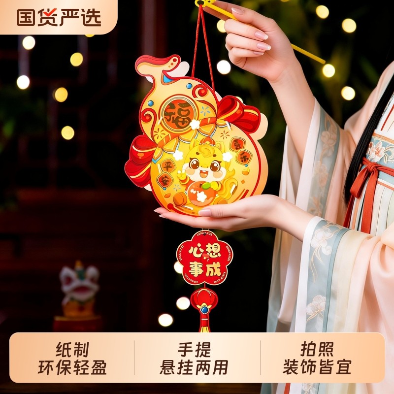 2026新年发光手提纸灯笼幼儿园儿童手工diy灯笼春节元宵场景布置