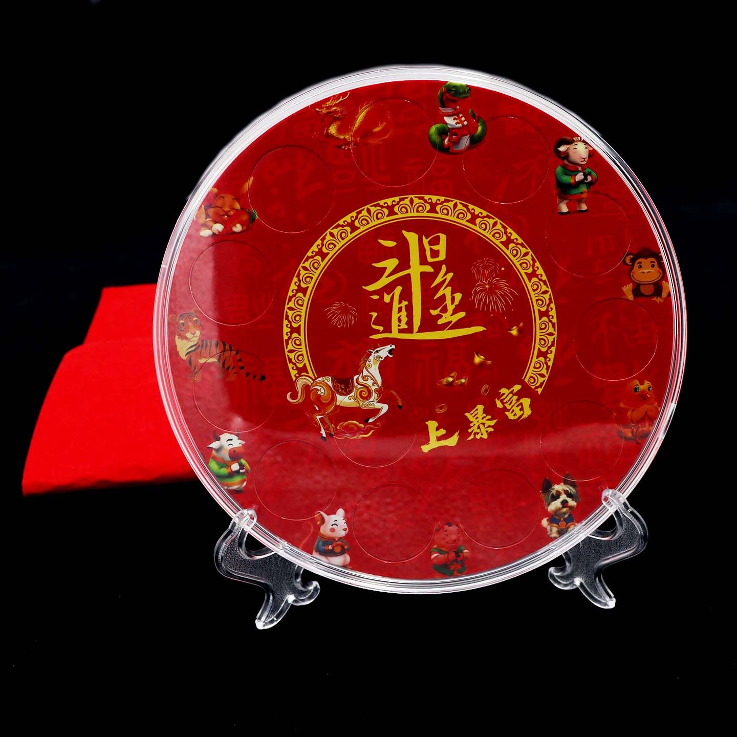 第二轮12生肖纪念币收藏盒彩绘圆盘透明PS料27mm硬币展架摆件收藏