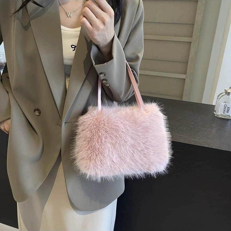 秋冬新款毛毛绒绒单肩包大容量手提包托特包复古百搭通勤时尚女包