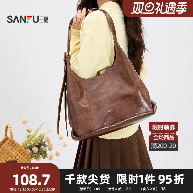 三福挎包冬季琥珀流金松弛感托特包大容量休闲时尚女包512744