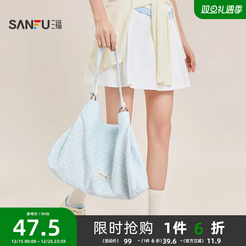 三福挎包夏季甜心少女慵懒花花托特包清新波点时尚女包501320