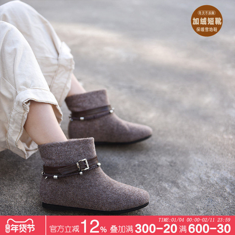 Artmu阿木小众毛毡加绒雪地靴女2025新款保暖棉鞋冬季女平底短靴