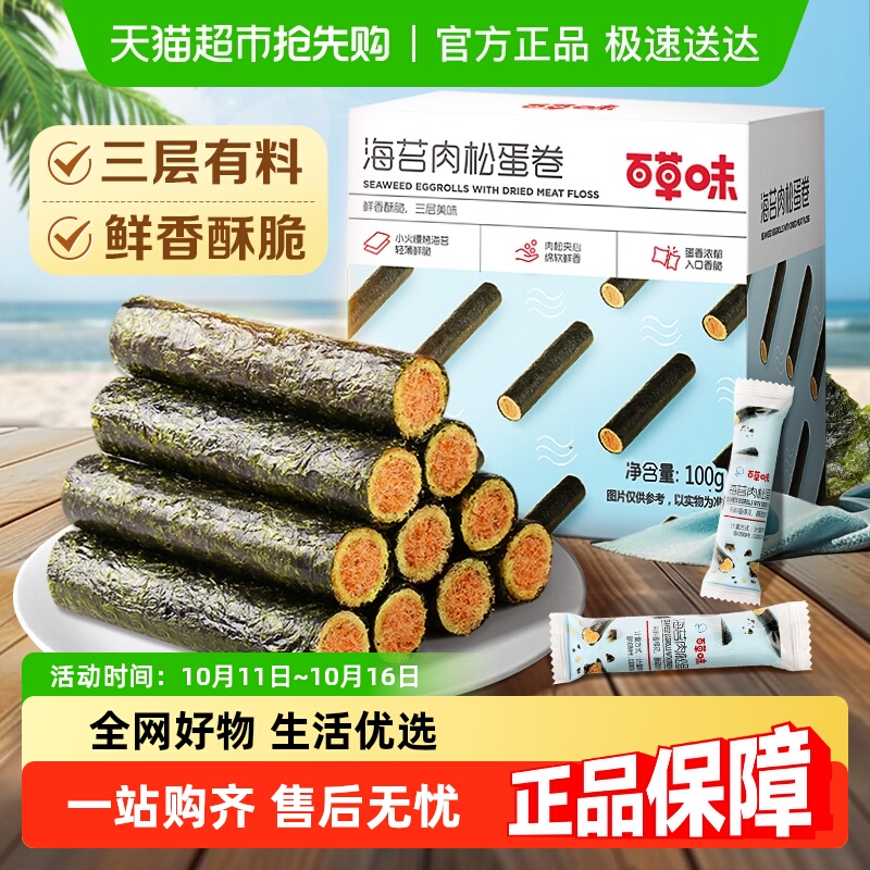 百草味海苔肉松蛋卷100g*2罐夹心网红小吃海味休闲零食即食饼干