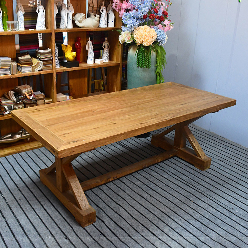 可定制漫咖啡桌椅老榆木老门板做旧实木6人8人10人长桌会议桌餐桌