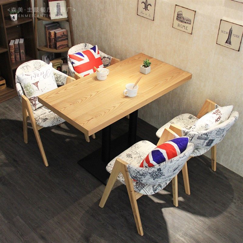 漫咖啡厅实木甜品奶茶店桌椅组合汉堡小吃休息区接待洽谈餐厅桌椅