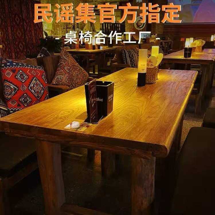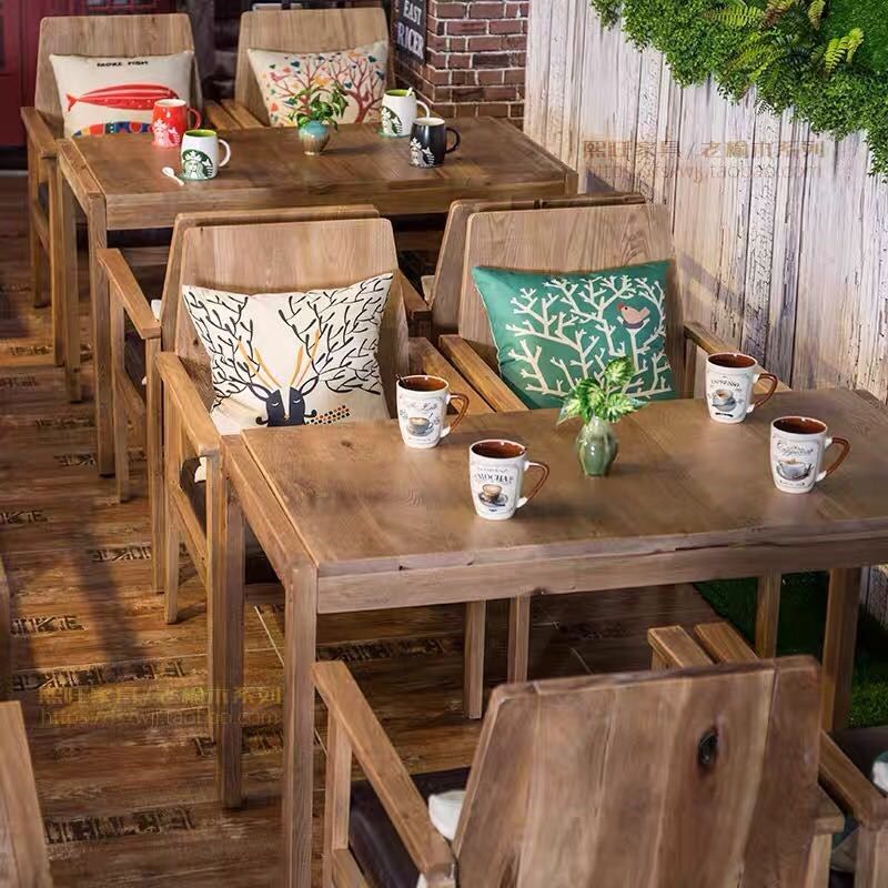 老榆木餐桌漫咖啡桌椅做旧全实木民谣酒馆家具奶茶店餐厅方桌组合