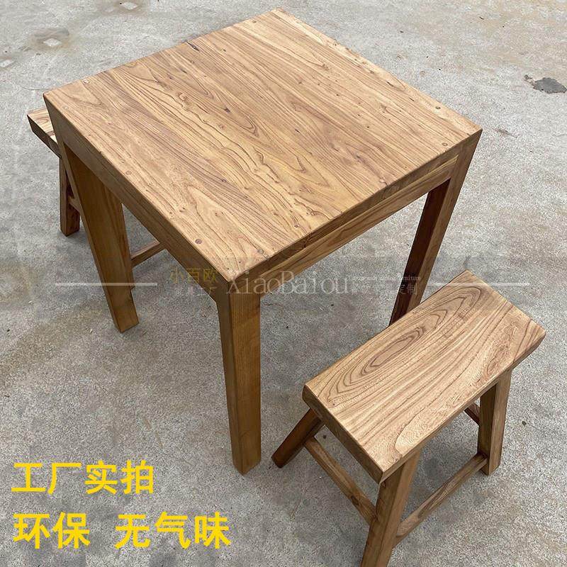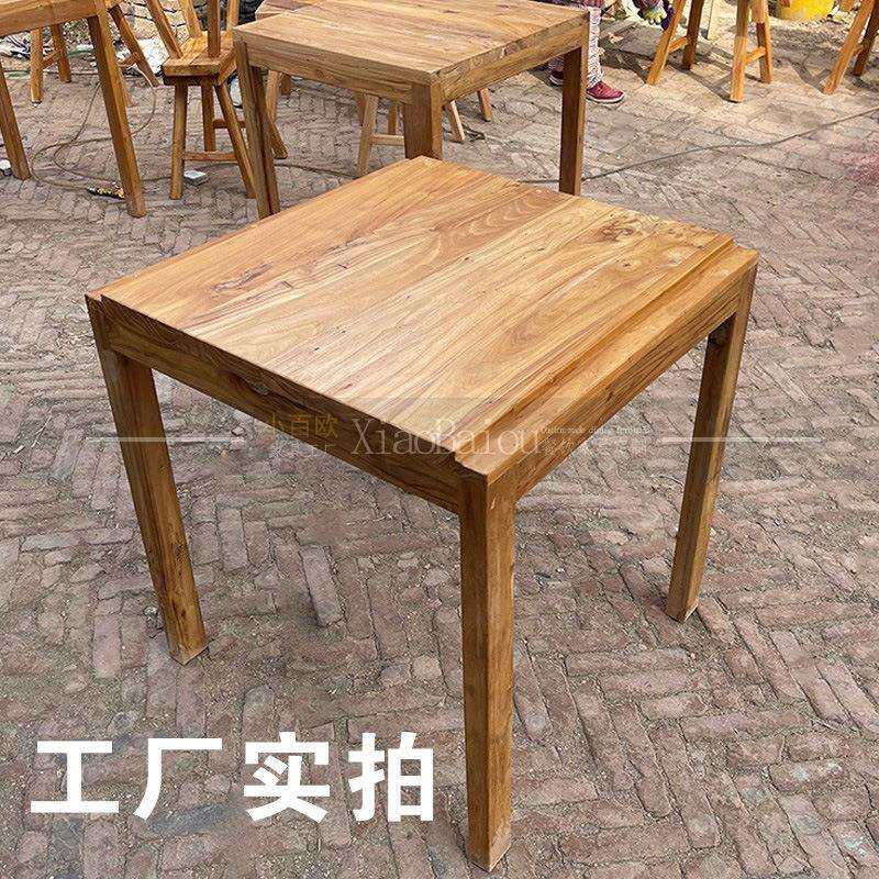 老榆木小方桌漫咖啡桌椅沙锅米线面馆桌子餐厅全实木商用仿古餐桌