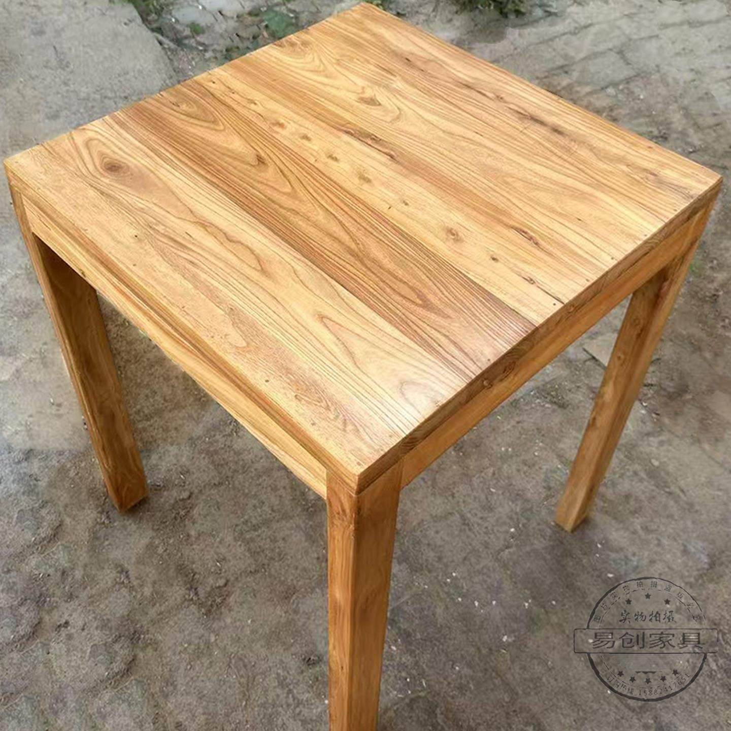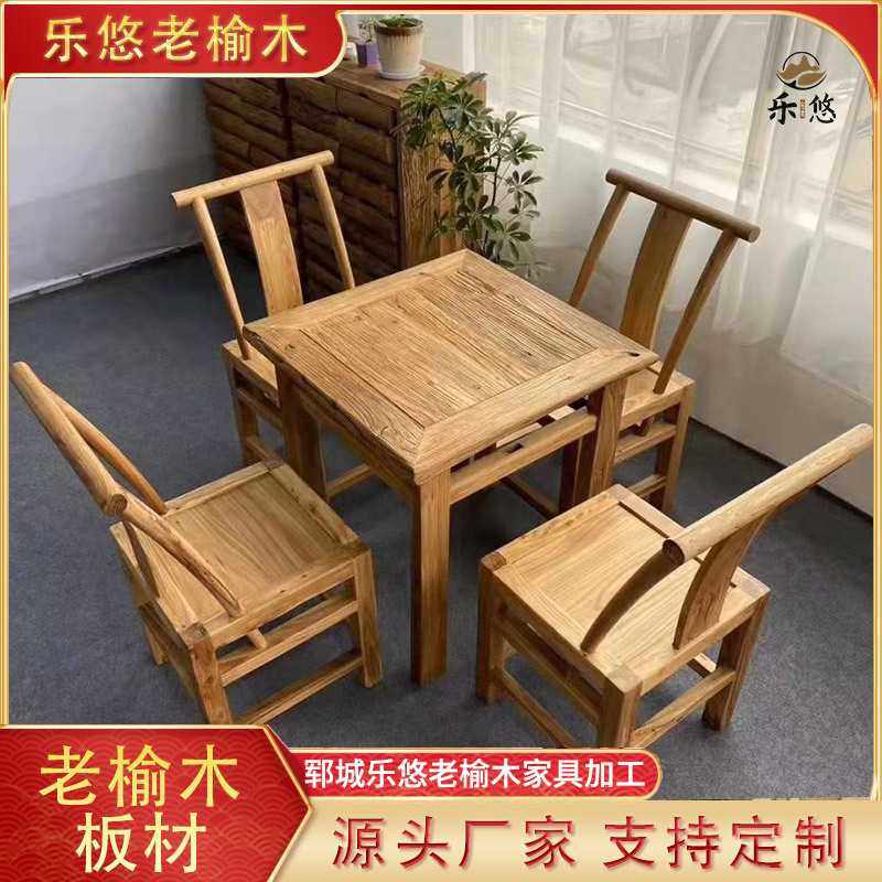 7VHV漫咖啡桌椅老榆木实木双人餐桌做旧小方桌老式咖啡桌八仙桌木