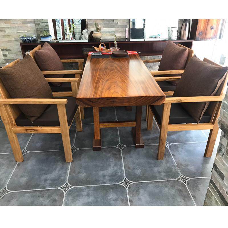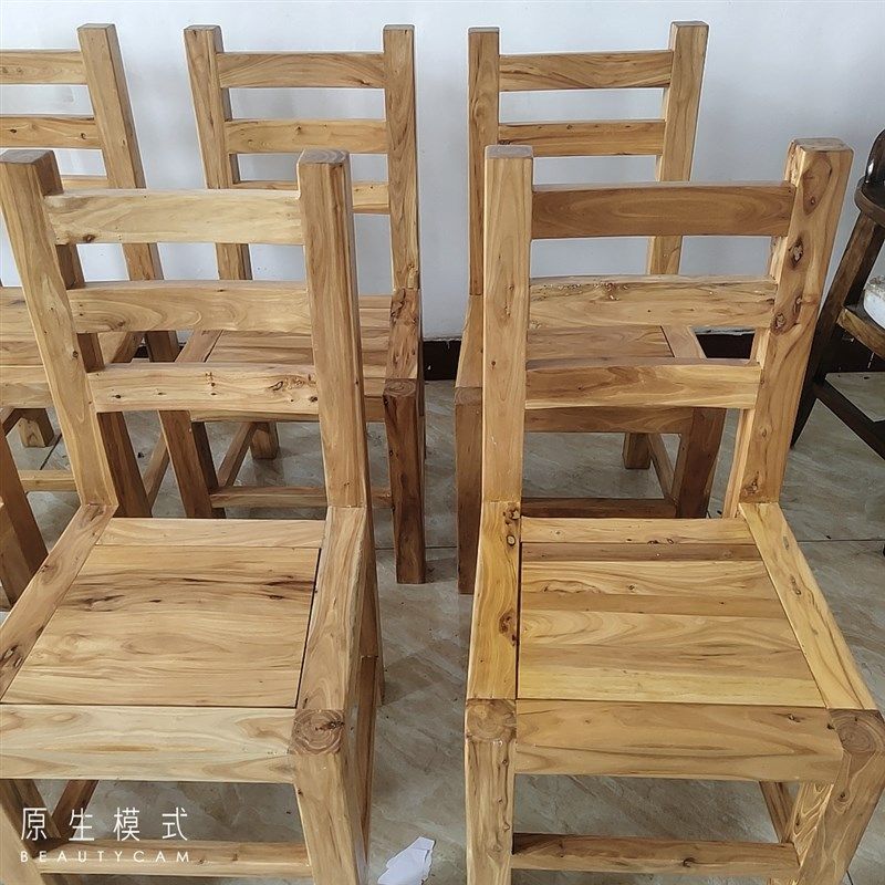 - 原木色全实木餐桌