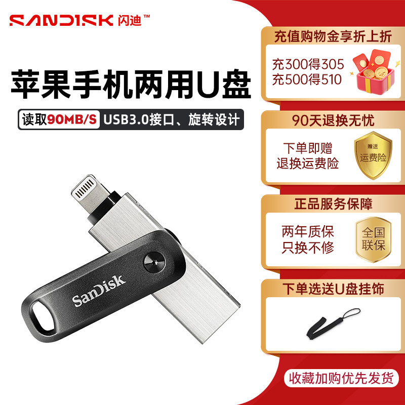 闪迪苹果手机U盘256g平板ipad电脑iphone大容量两用外接优盘128g