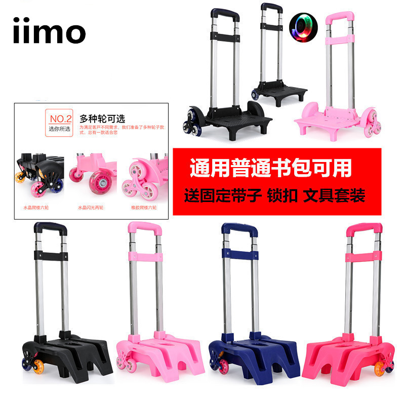 小学生书包拉杆架车男女可折叠杆子6轮爬梯闪光拖车背包通用配件