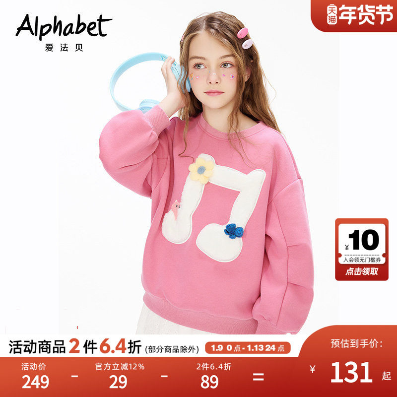 爱法贝25春秋新款女童甜美卫衣儿童套头衫中大童学生外套粉色上衣