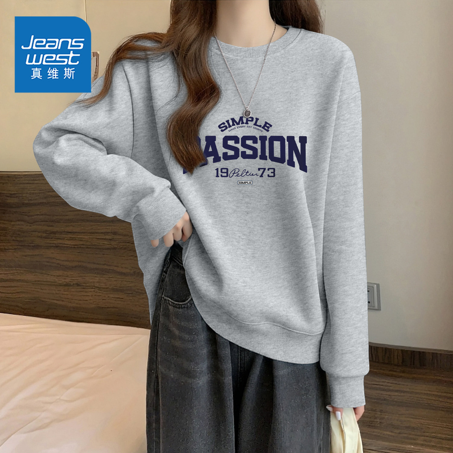 真维斯灰色卫衣女2026新款春秋学生美式慵懒圆领宽松长袖外套上衣