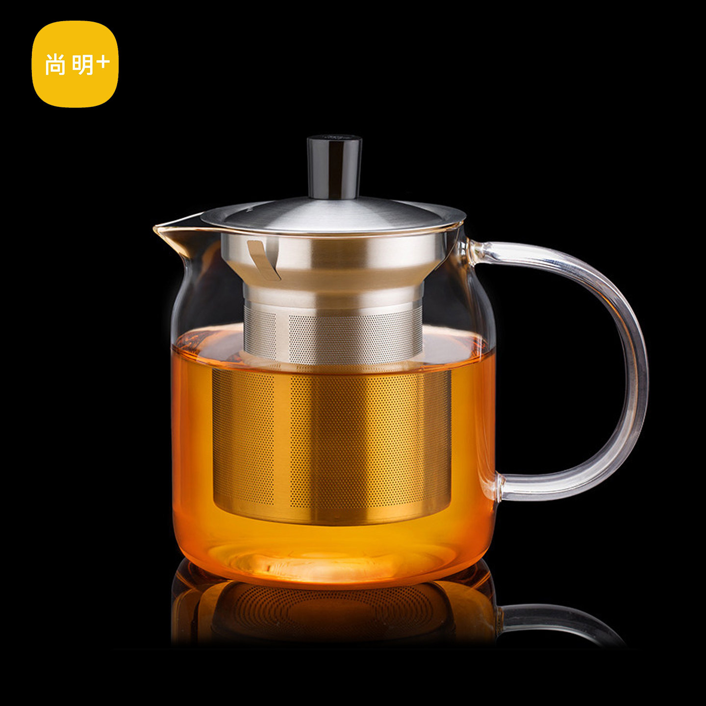 尚明玻璃茶壶耐高温泡茶壶不锈钢过滤茶具加厚耐热玻璃花茶壶单壶