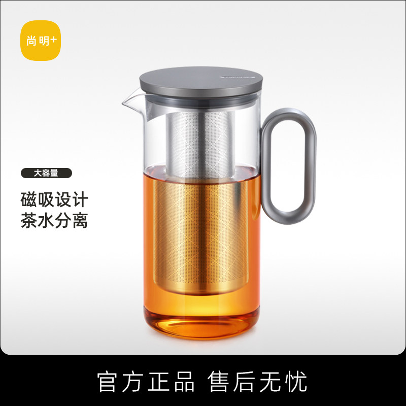 尚明玻璃茶壶家用过滤泡茶壶磁吸盖胆大容量水壶简约单壶茶具套装