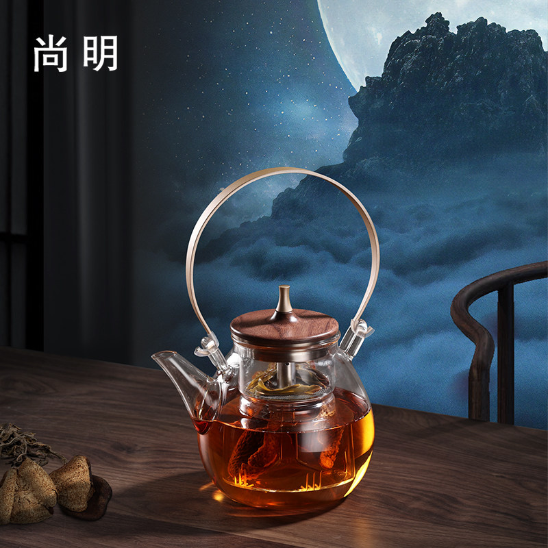 尚明高端玻璃煮茶器蒸茶壶一体两用 电陶炉加热专用耐高温单茶壶
