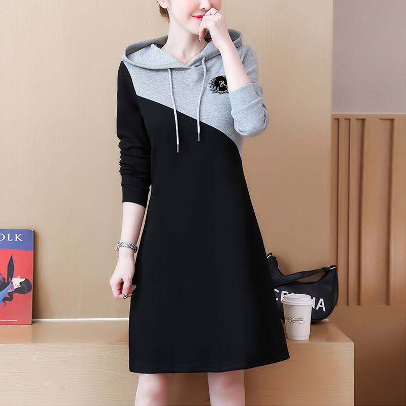 长袖连衣裙女春秋装小个子打底卫衣裙子2025新款洋气显瘦a字连帽