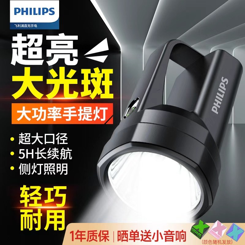 飞利浦手电筒强光充电超长续航大容量户外手提探照灯应急工作矿灯