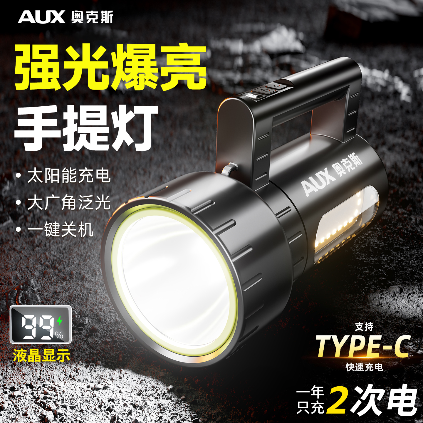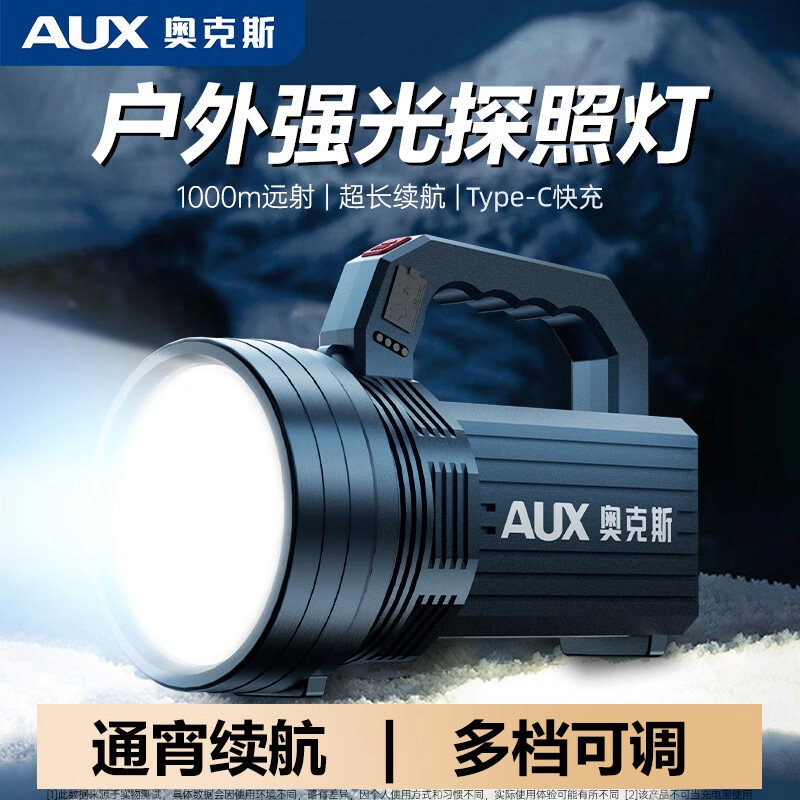 奥克斯2025新款手电筒强光充电超亮超长续航户外家用太阳能探照灯