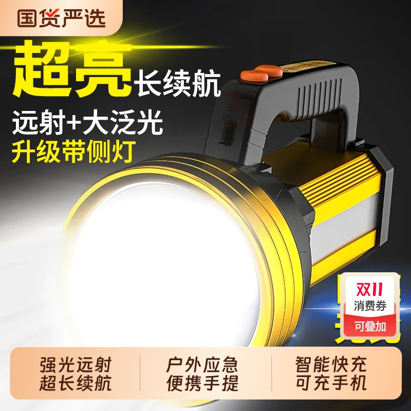 手电筒强光充电户外超亮远射led大功率超长续航大容量手提探照灯