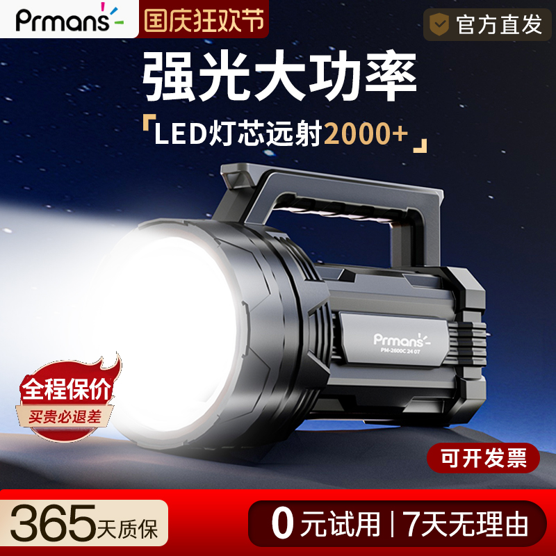 浦尔曼手电筒充电强光超亮大功率大容量家用手提探照灯户外照明灯