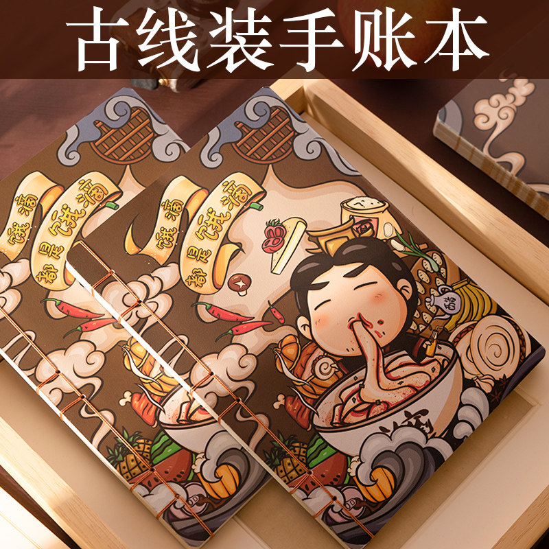 记忆印象溶漾中国风手账本复古风笔记本超厚手帐本网红手账简约ins风简约文艺复古方格点阵线装手帐记事本