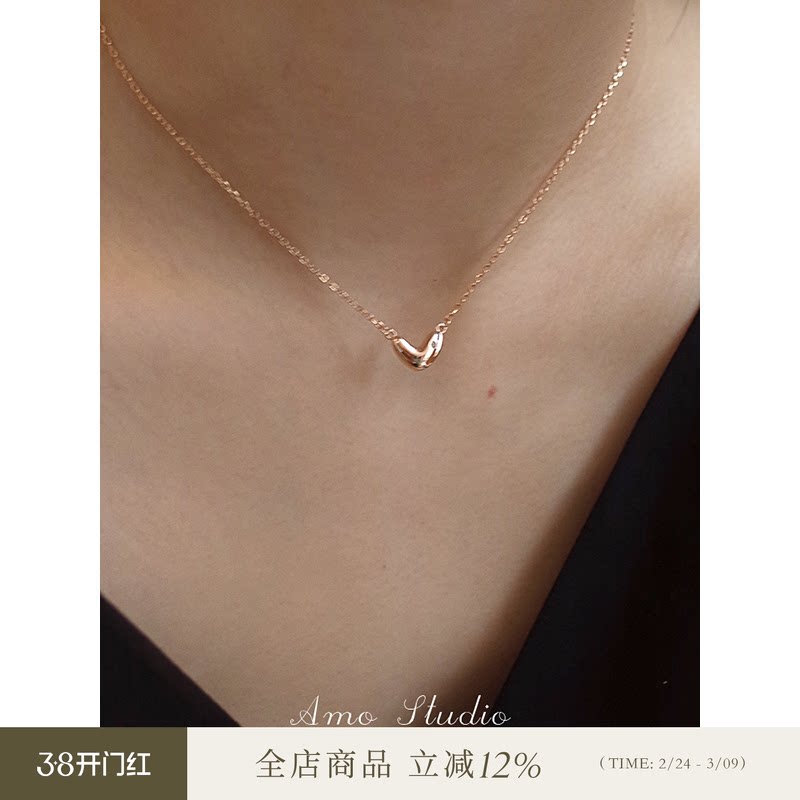 AMO简爱镶钻爱心纯银项链女2026新款冬小众设计感甜美简约锁骨链