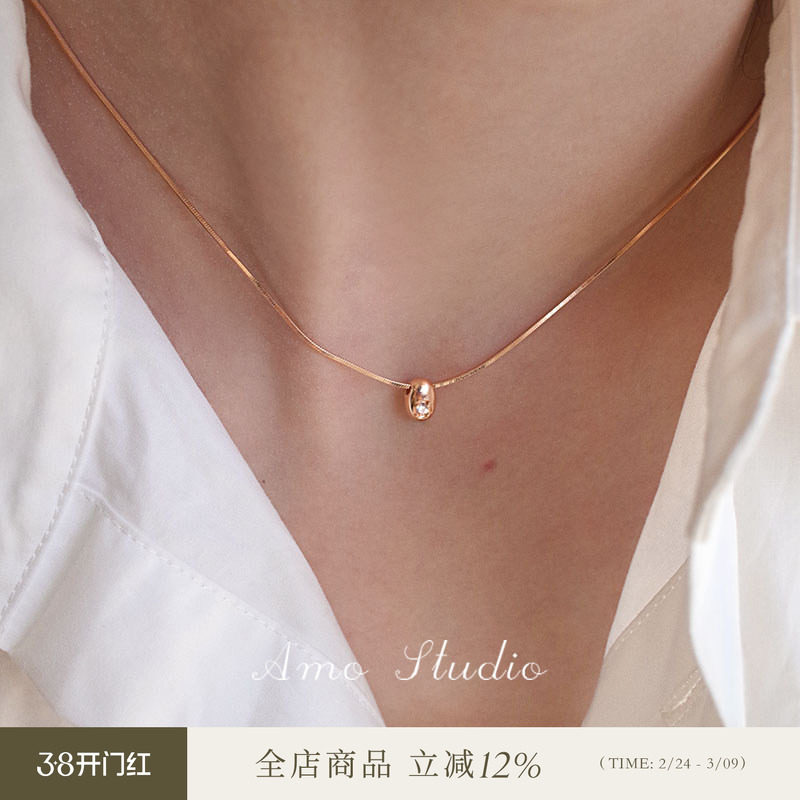 AMO闪钻小金豆纯银项链女简约小众高级百搭日常精致锁骨链2026新