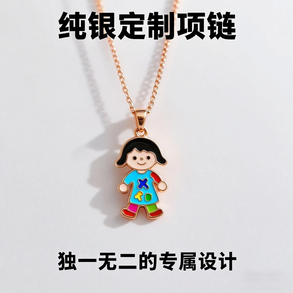 纯银定制儿童画涂鸦项链彩色珐琅吊坠DIY个性化定制纪念生日礼物