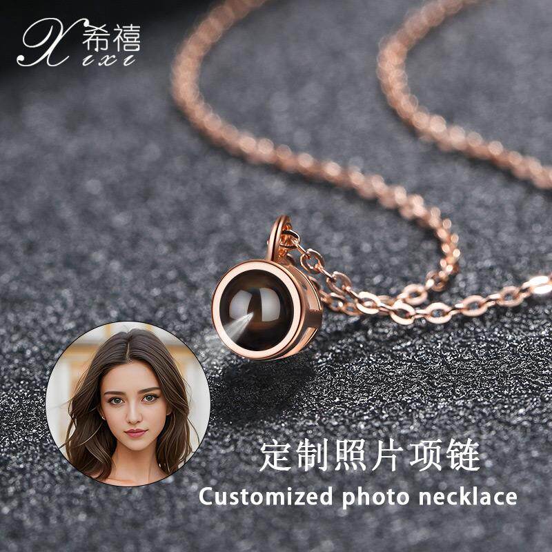 投影定制项链纯银女照片刻字吊坠女三八节配饰女生生日礼物送女友