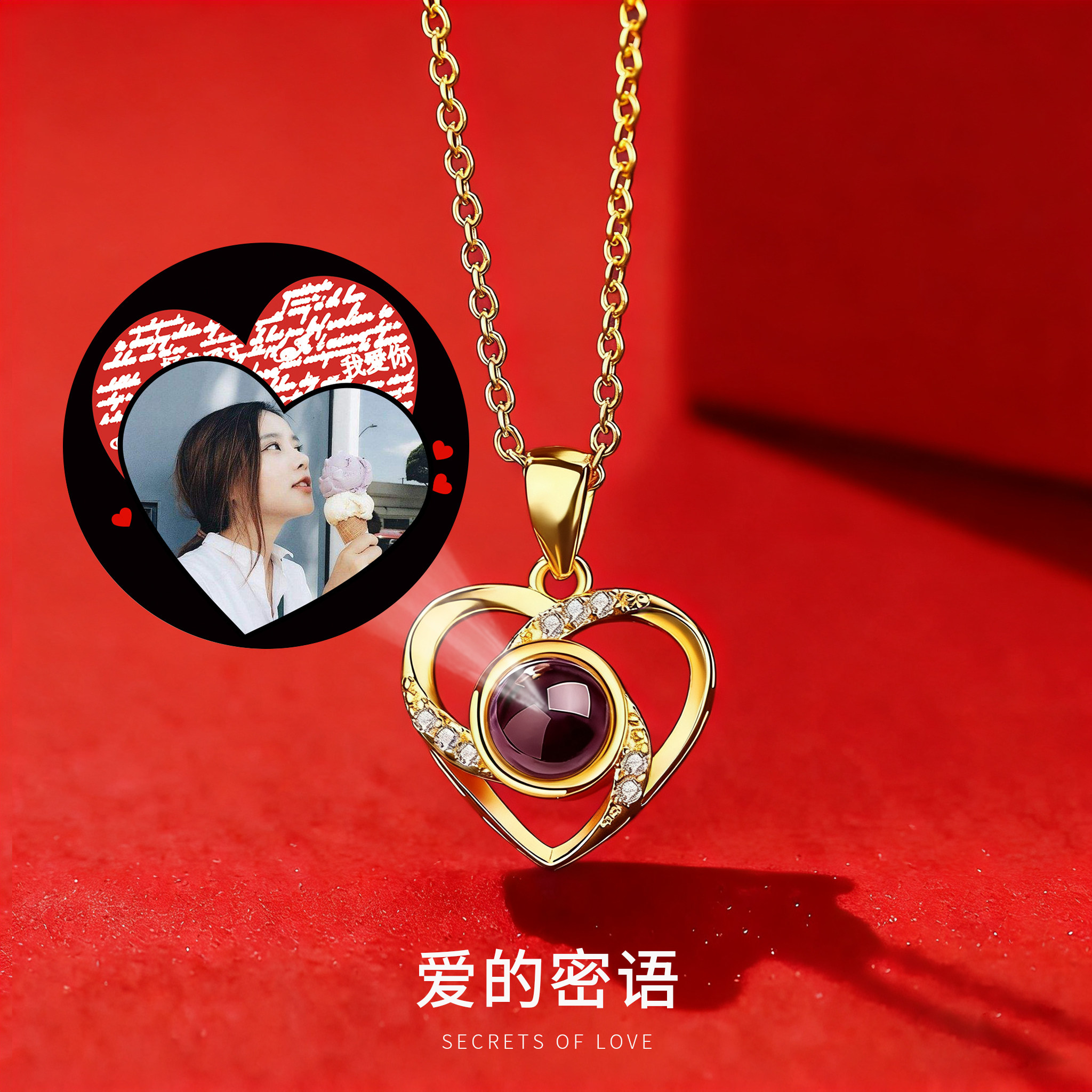 爱的记忆项链女纯银定制投影吊坠100种我爱你三八节礼物送女朋友