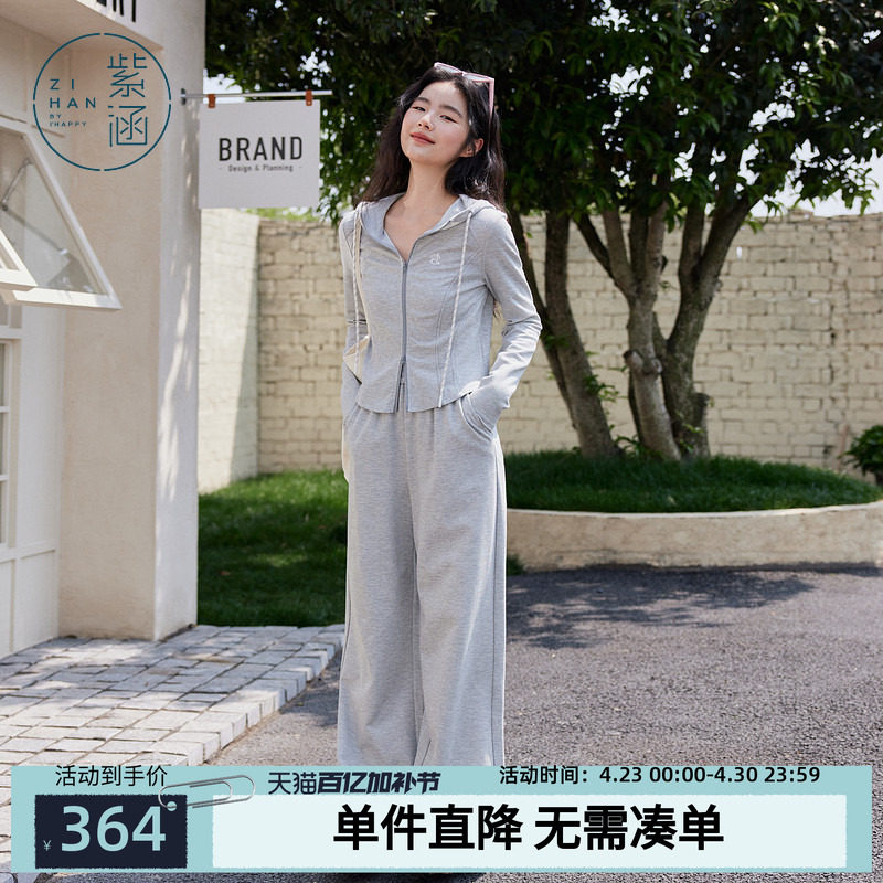 YMER卫衣阔腿裤两件套女2026春新款连帽拉链休闲运动套装YC-0916