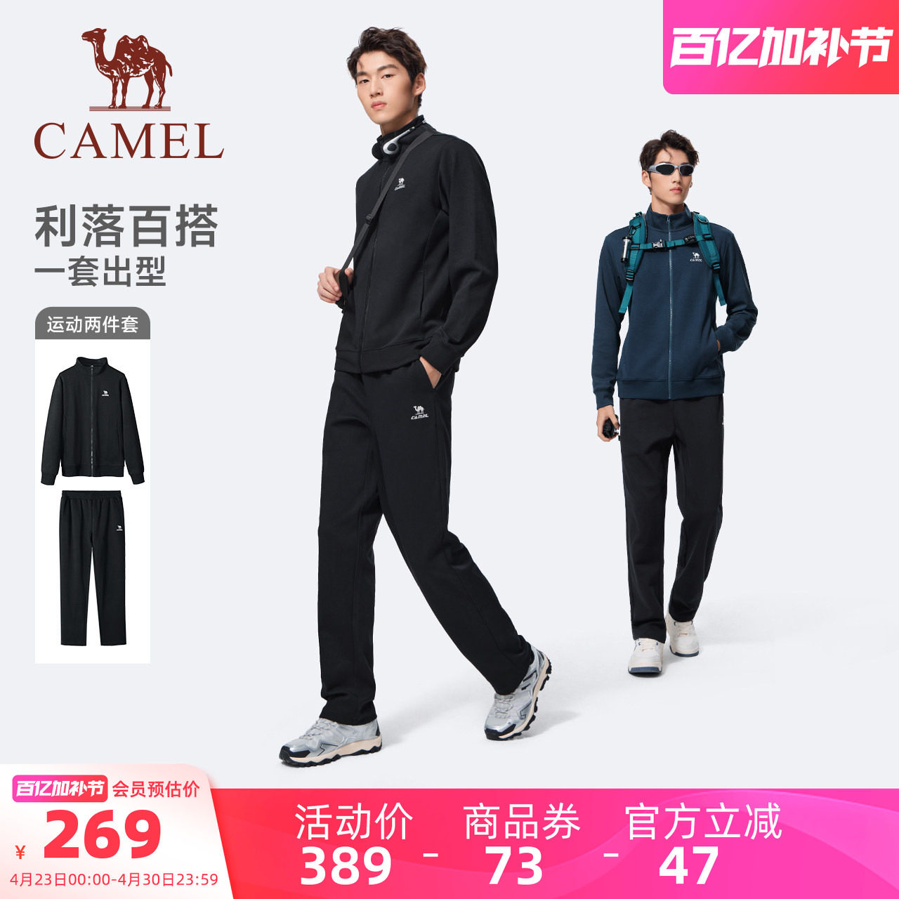 骆驼运动套装女款2025秋季新款立领卫衣套装舒适百搭款休闲两件套