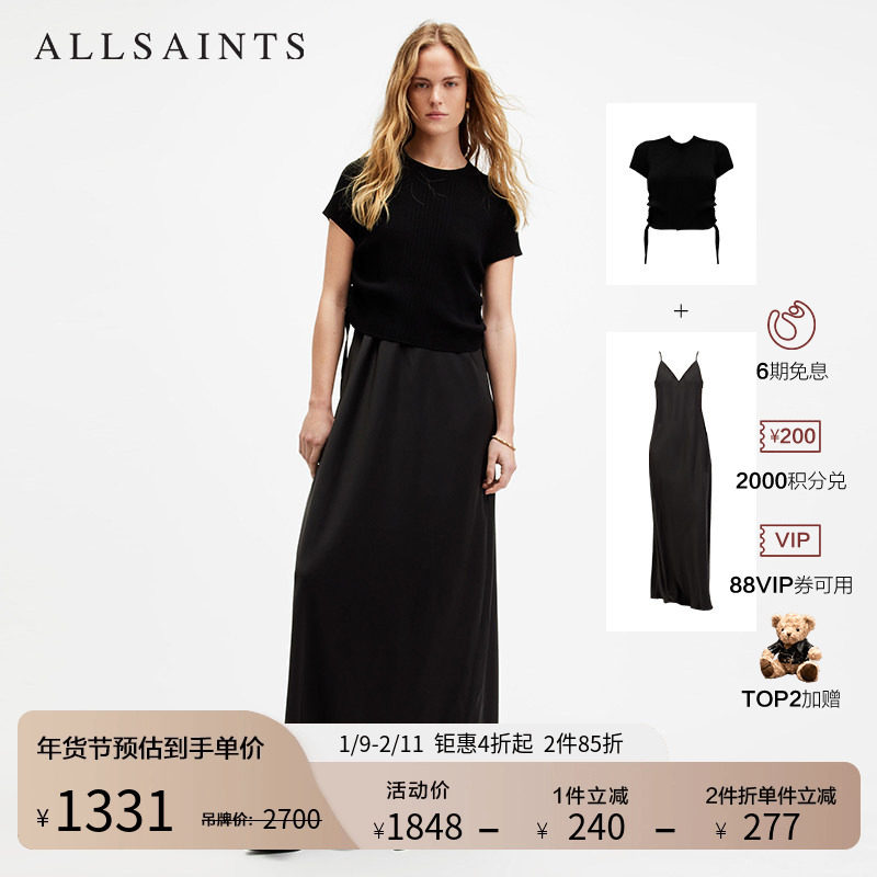 ALLSAINTS女士针织吊带裙两件套裙装修身连衣裙小黑裙秋季W302DA