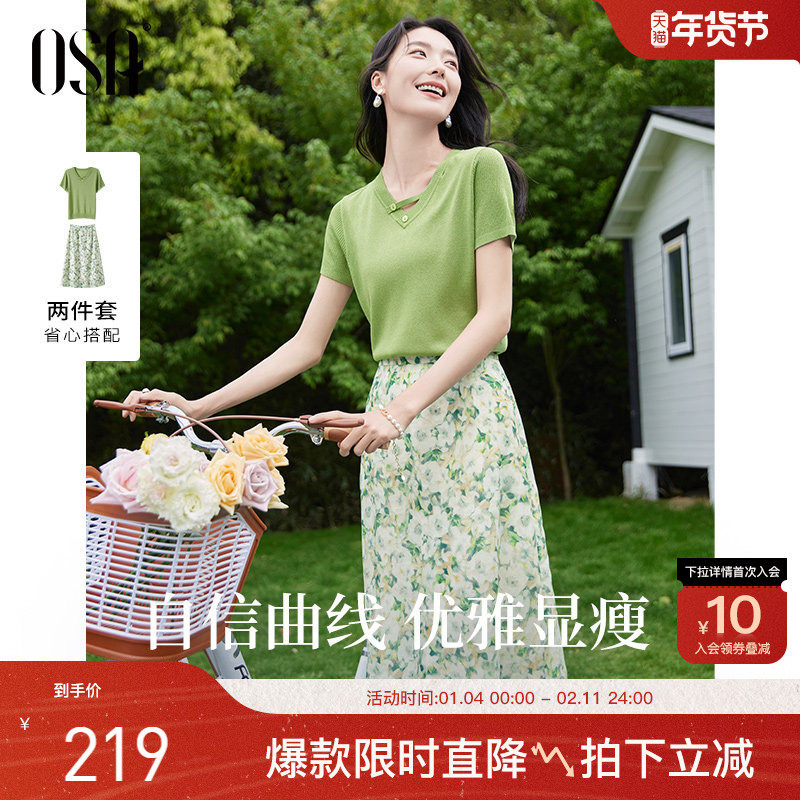 【小森林套裙】OSA欧莎小清新针织衫碎花半裙两件套女夏季连衣裙