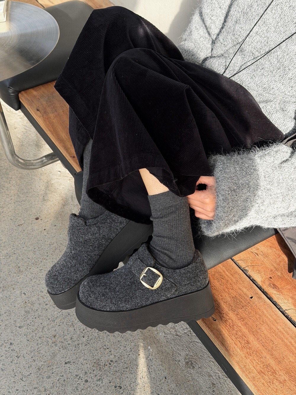 新款加绒勃肯鞋毛呢复古休闲勃肯鞋内增高厚底鞋街头潮鞋538-5