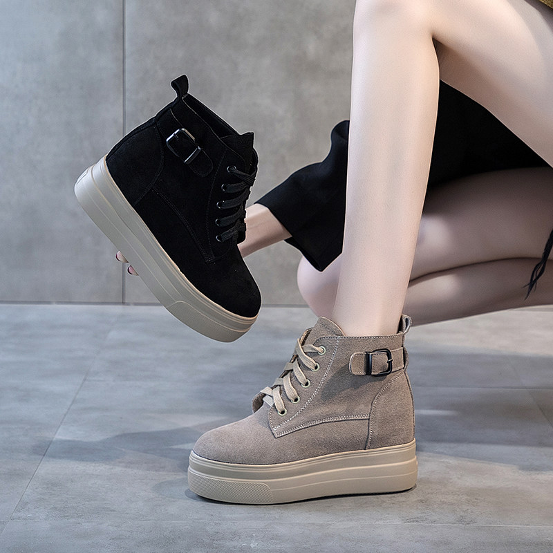 真皮内增高女鞋秋冬新款百搭厚底运动鞋薄款小码高帮休闲松糕短靴