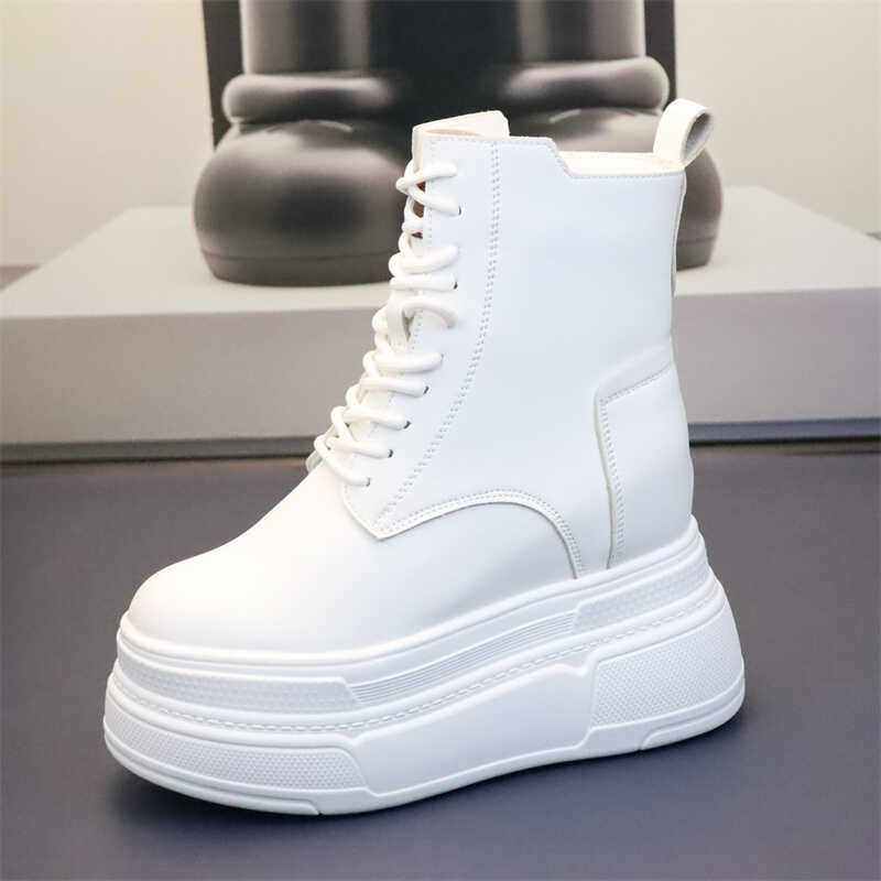 超高跟10cm女鞋休闲双拉链高帮小白鞋潮流显瘦内增高皮面保暖棉鞋