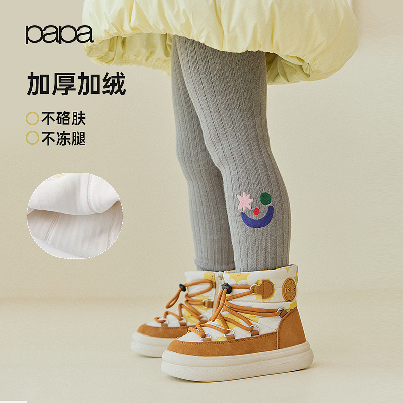 【新品】papa爬爬冬季儿童打底裤加绒加厚保暖女童弹力高腰袜裤