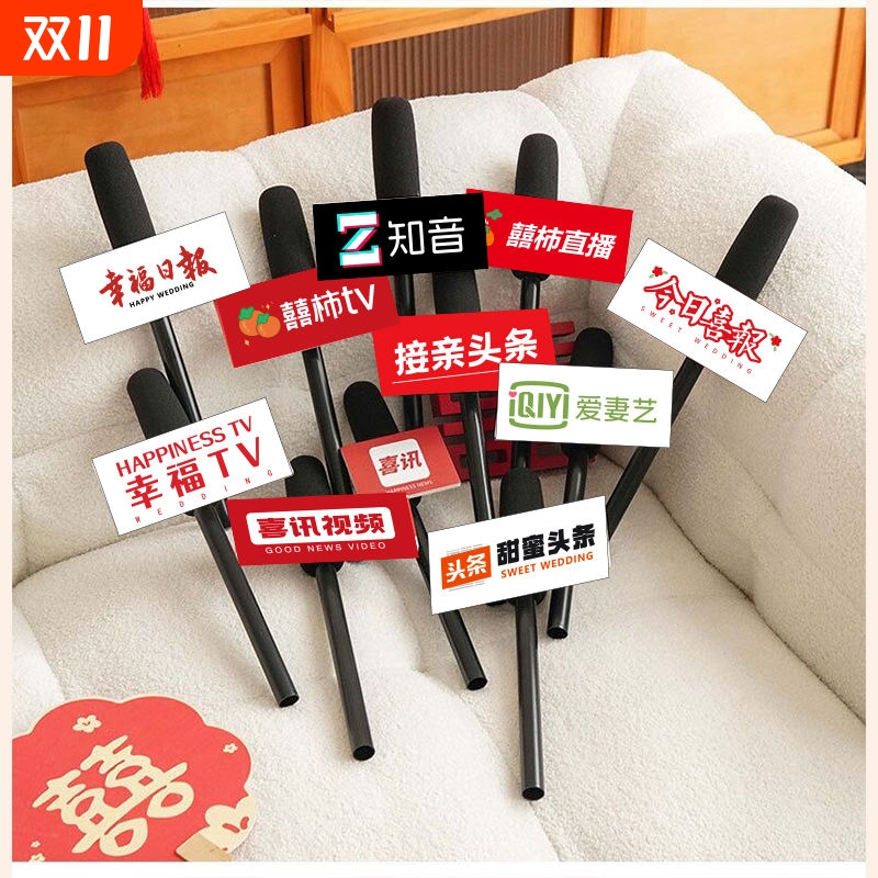 结婚新娘伴娘团拍照出片道具电视台采访话筒接亲堵门创意搞笑装扮