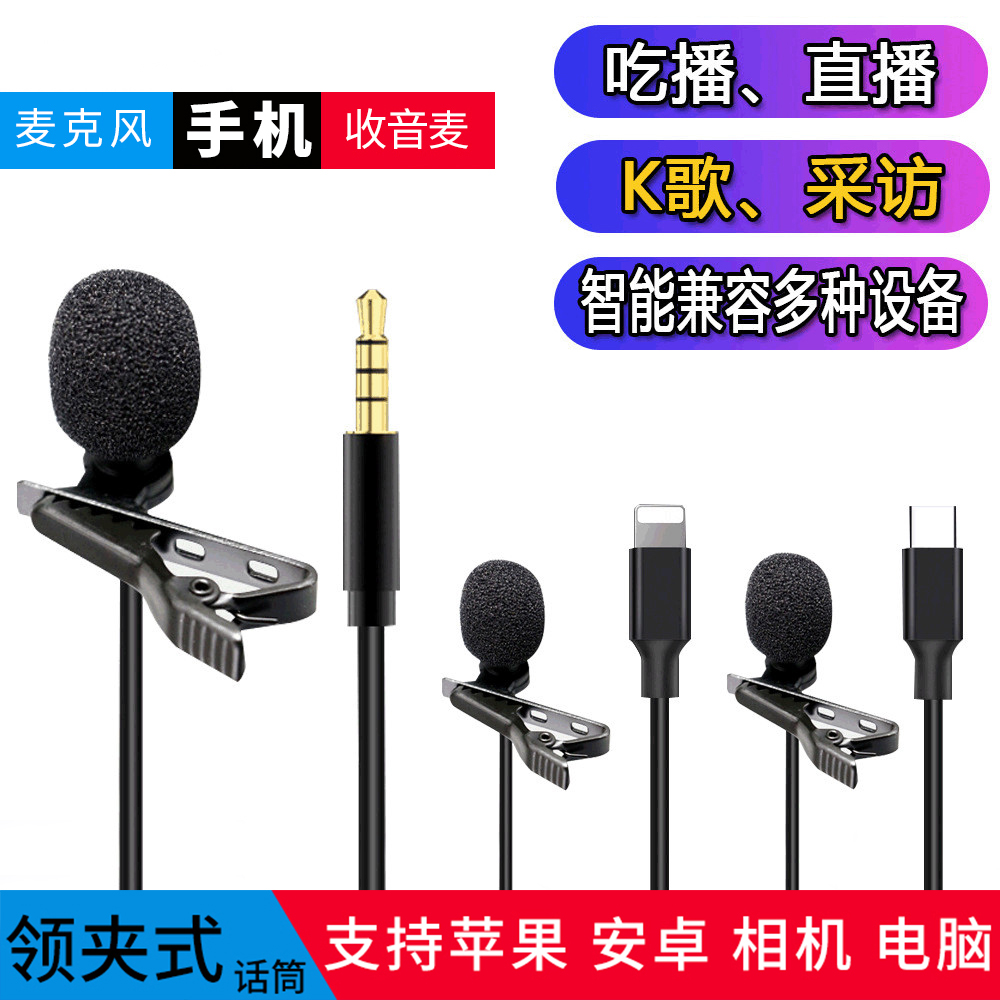 适用于苹果安卓手机抖音吃播领夹麦克风网课直播单反录音采访话筒