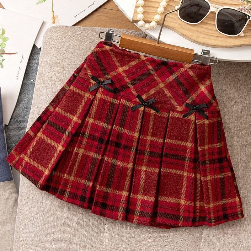 女童半身裙秋冬新款洋气儿童红色格子短裙韩版百搭新年女孩百褶裙