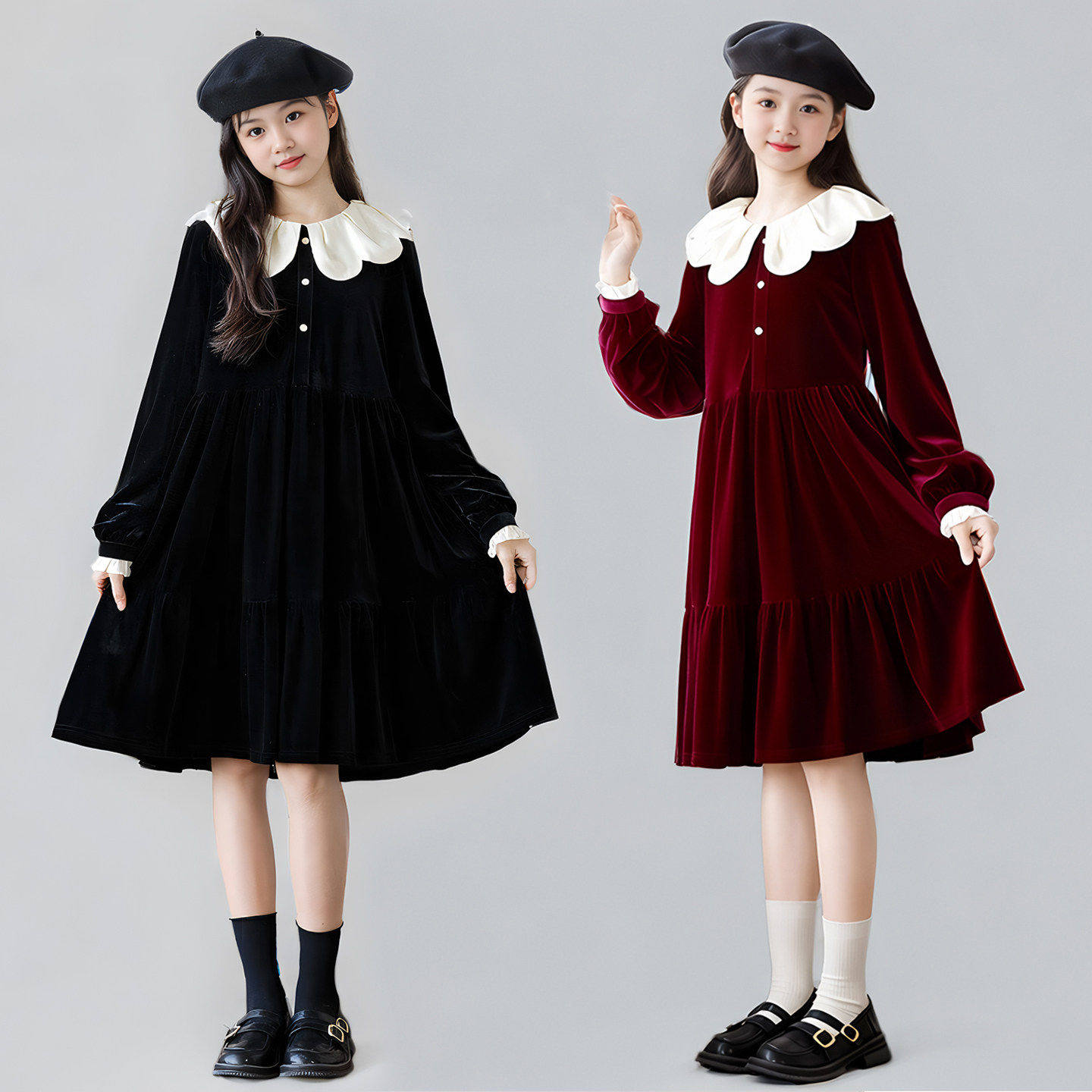 韩版女童洋气宽松丝绒连衣裙秋冬季新款中大童加绒生日礼服公主裙
