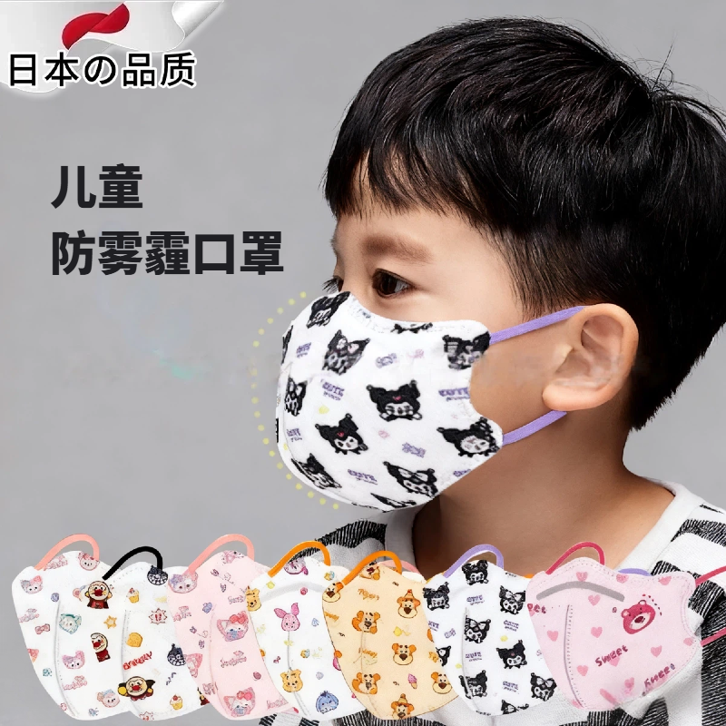 日本防雾霾口罩kn95幼童儿童口罩1-15岁防护透气3D立体4层卡通独