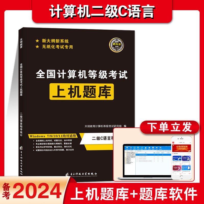 国图书店正版 全国计算机等级上机题库 二级C语言程序设计 天明教育计算机等级研究组 9787564749170 电子科技大学出版社