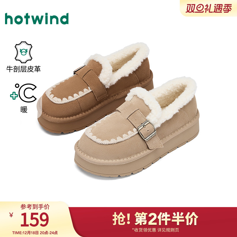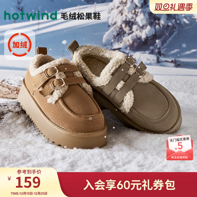 热风女鞋25冬新款女士棉鞋加绒保暖雪地靴松糕底舒适百搭冬靴女