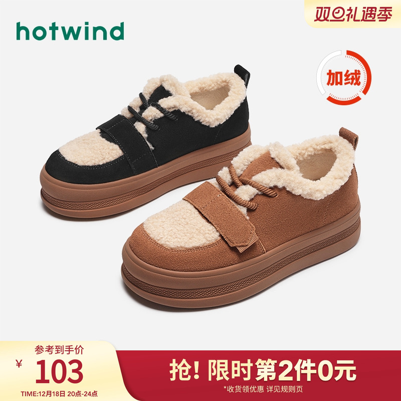 热风女鞋25冬新款女士加绒休闲靴复古潮流百搭雪地靴户外舒适棉鞋